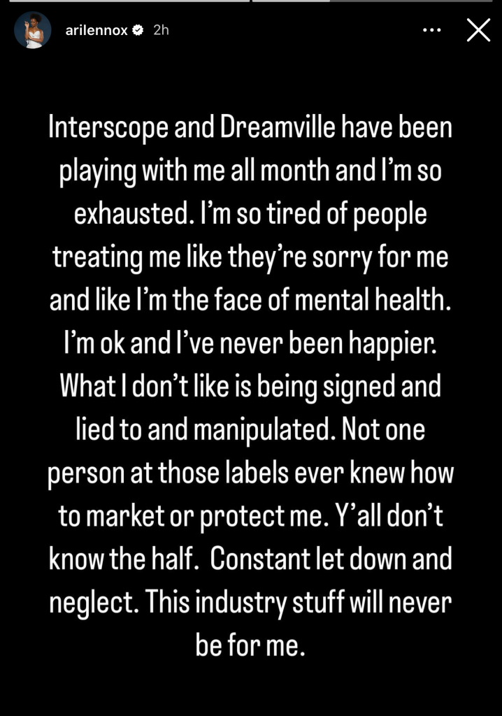 In a deleted Instagram story, the 34-year-old called out both labels for their neglect, saying, “Not one person at those labels ever knew how to market or protect me.”