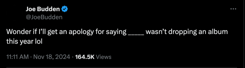 The mother-of-three released her debut album Invasion of Privacy in 2018, which boasted hits like “Bodak Yellow” and “I Like It” featuring J Balvin and Bad Bunny. Last year, Joe Budden took to X, throwing shade at an unnamed artist after their much-anticipated album drop was once again pushed back. He wrote at the time: “Wonder if I’ll get an apology for saying _____ wasn’t dropping an album this year lol.” Fans quickly speculated that Cardi B is the artist he’s talking about.