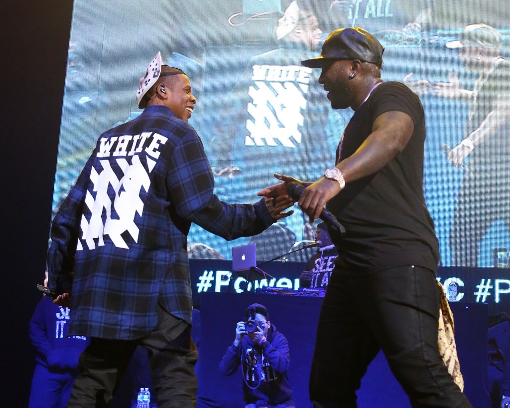 NEW YORK, NY – OCTOBER 30: Jay Z and Jeezy perform during Power 105.1’s Powerhouse 2014 at Barclays Center on October 30, 2014 in New York City. (Photo by Taylor Hill/Getty Images)