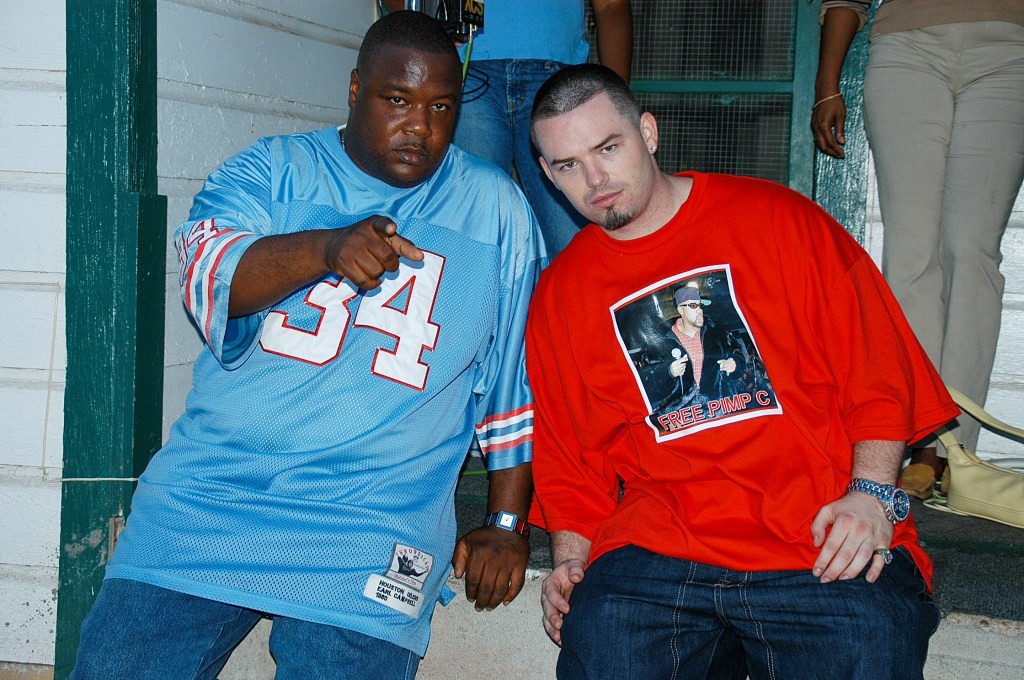 DJ Michael “5000” Watts of Swisha House and rapper Paul Wall (Paul Slayton) on the set of the “Sittin’ Sideways” music video in Houston, Texas on May 10, 2005.