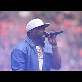 Jun 15, 2024; Vancouver, British Columbia, CAN; Rapper 50 Cent during pre-game of the game between the BC Lions and the Calgary Stampeders at BC Place. Simon Fearn / USA TODAY NETWORK via Imagn Images
