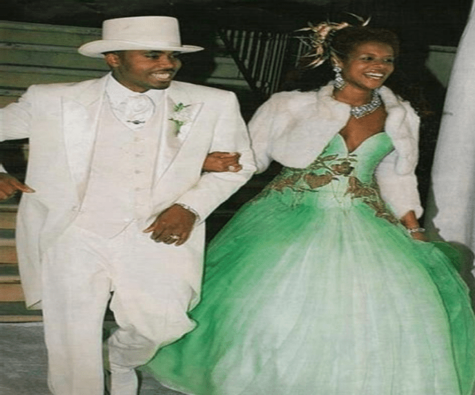 Nas used Kelis’ green silk and chiffon wedding dress as a prop on his Life Is Good album cover post their divorce.