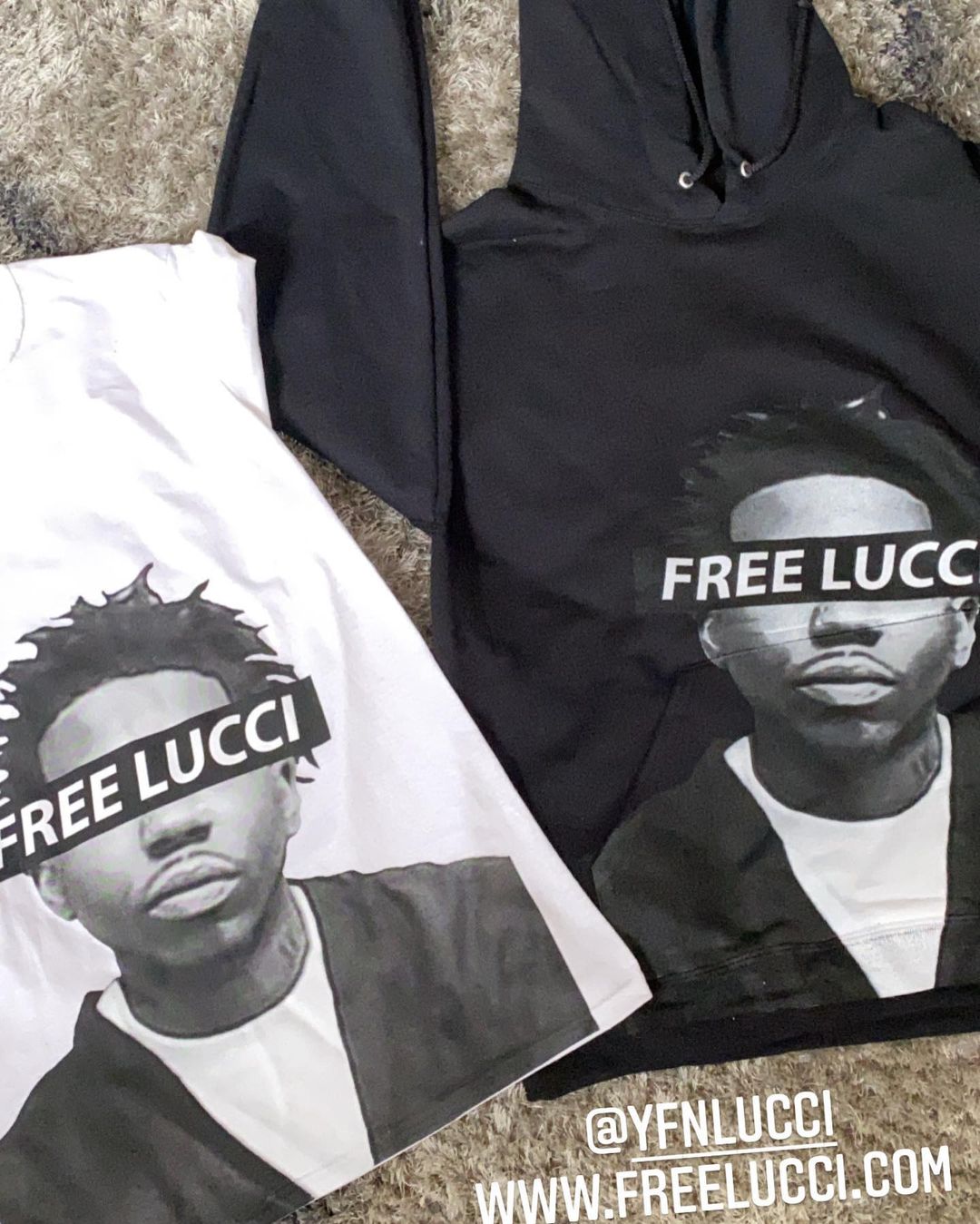 While Lucci is locked away, the rapper found himself a way to keep the coins flowing after uploading a photo of some “Free Lucci” merch. As fans wait for an update on the case, they can browse some merch for a price between $13-28$.